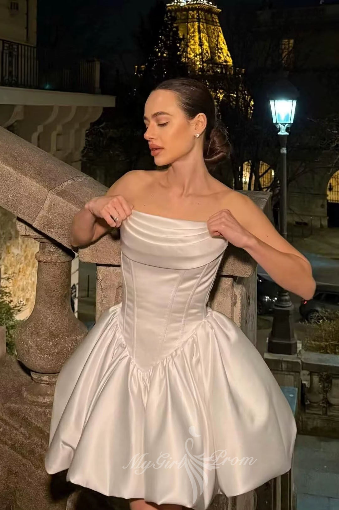 Satin Pink Short Homecoming Dress Ruched Strapless Bubble Party Dresses GM741
