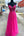 Chic Spaghetti Straps Slit Long Hot Pink Prom Dresses, V-neck Formal Party Gowns GP432